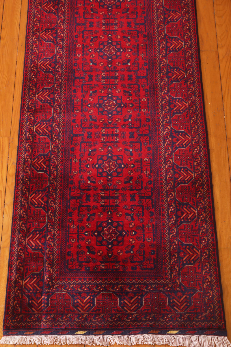 The hallmark of the Beljik is its remarkable color, from varying shades of deep reds, blues and blacks. These rugs are generally considered to be the finest of all tribal style rugs. They are made with finely-spun wool and knotted into intricate geometric patterns with complex borders. The wool for these carpets is only taken from the belly of the sheep, greatly increasing the number of sheep required to produce this wool and therefore the price of this wool. The dyes used in Beljiks are commercially-produced. Beljiks sometimes have needlework detailing along their fringe and bound edges, adding to the overall intricacy of the carpet.